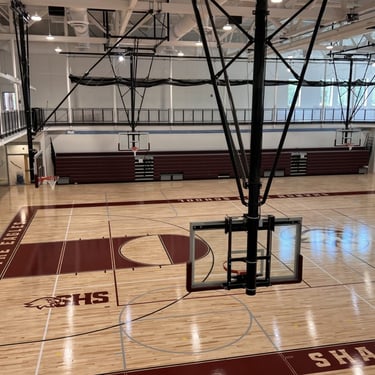 Roll‑Up Gym Divider Curtain: Operates via key lock to roll out as needed, and rolls up for compact storage