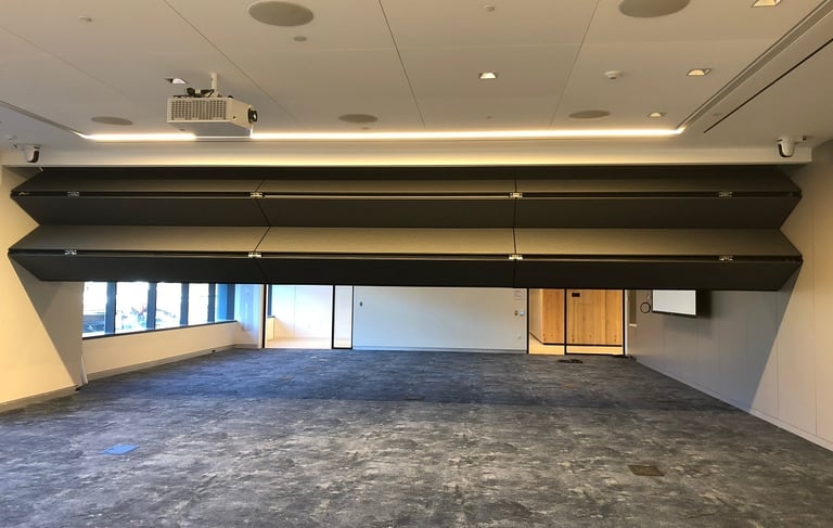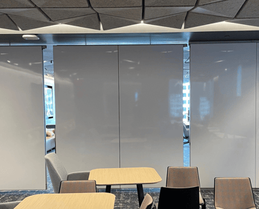 With a wide variety of vertically rising, automatic, operable partitions, Skyfold offers some of the best STC rated walls. Now with more options than ever before and an extensive choice of finishes, it is even easier for clients to design and manage their space. Their unique design allows for walls to be stored in the ceiling optimizing floor space.